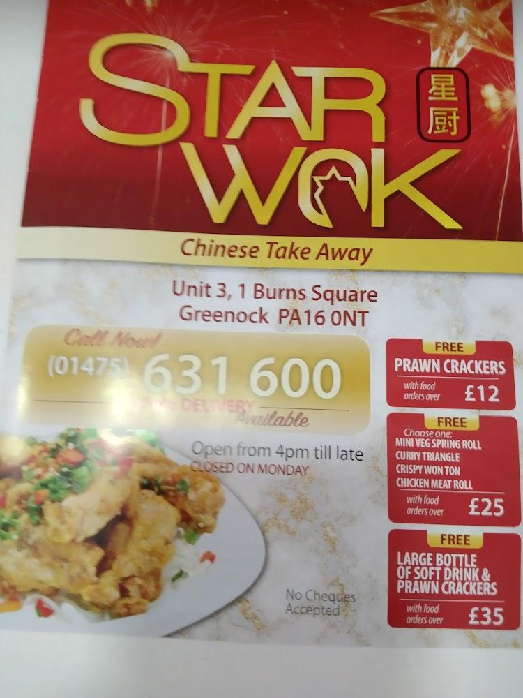 Tucked away in Burns Square, Star Wok is a local favorite in Greenock, UK. The unassuming exterior often leads to surprising culinary adventures within. The restaurant radiates a warm, welcoming vibe, perfect for solo diners or families seeking a casual meal. With free street parking available and a lot nearby, accessibility isn't an issue. Conveniently open every day of the week, it’s a go-to spot for late-night cravings or a quick lunch break. The staff greets diners with genuine friendliness, contributing to that homey feel. Their commitment to quality shines through in both the meals and customer service, offering an inviting atmosphere that makes repeat visits likely. Star Wok effortlessly embodies the essence of local dining, where every meal feels like a home-cooked feast. Whether you're a Greenock veteran or just passing through, this place stands out as a must-try dining destination.